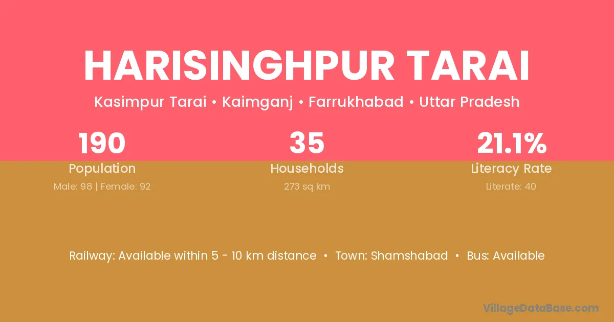 Harisinghpur Tarai village has a total population of 190 people, of which 98 are males and 92 are females.