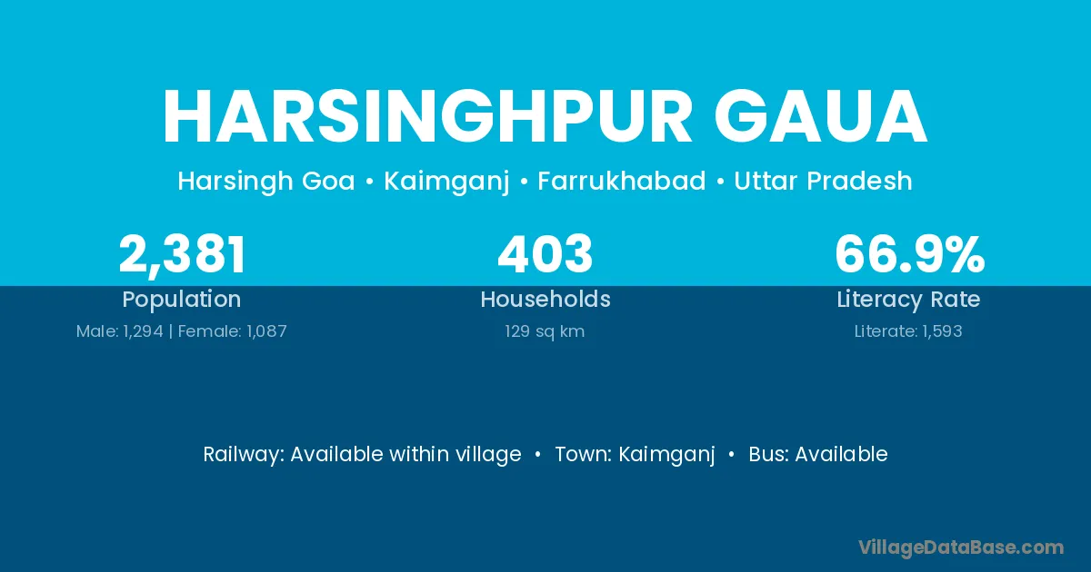 Harsinghpur Gaua village has a total population of 2,381 people, of which 1,294 are males and 1,087 are females.