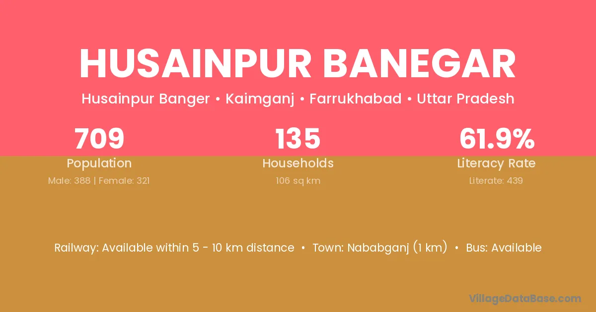 Nababganj (1 km) is the nearest town to Husainpur Banegar village for major economic activities and is located approximately 1 km away.