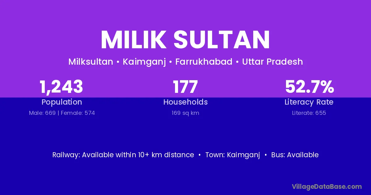 Milik Sultan village is located in the Kaimganj Tehsil of the Farrukhabad district in Uttar Pradesh .
