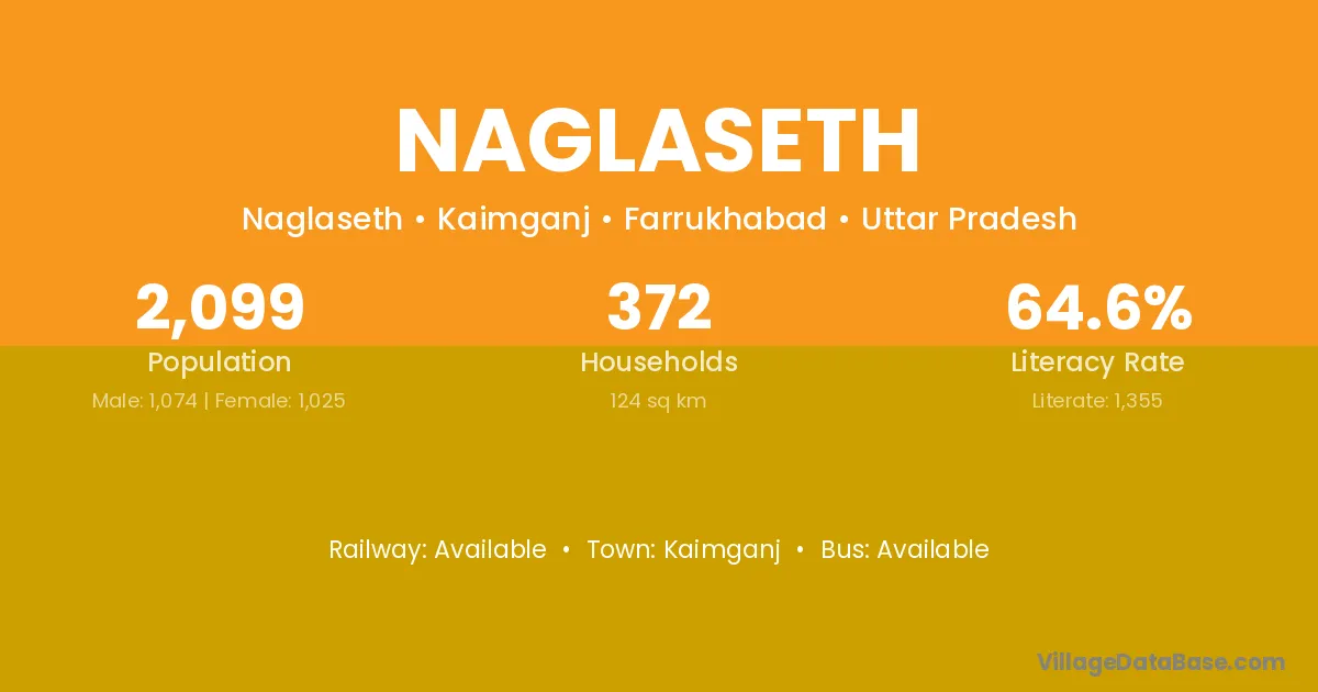 Naglaseth village has a total population of 2,099 people, of which 1,074 are males and 1,025 are females.