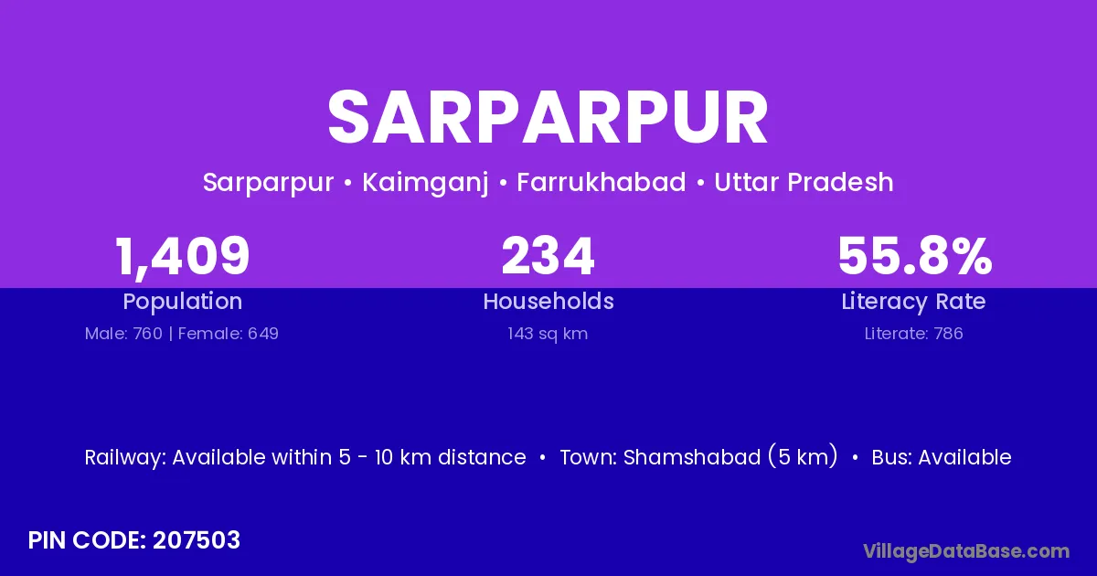 Shamshabad (5 km) is the nearest town to Sarparpur village for major economic activities and is located approximately 5 km away.