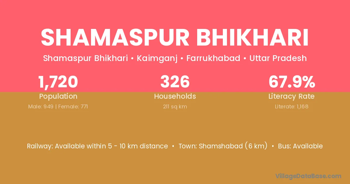 Shamshabad (6 km) is the nearest town to Shamaspur Bhikhari village for major economic activities and is located approximately 6 km away.