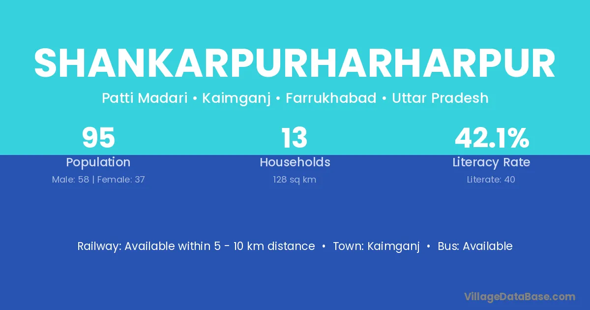 Shankarpurharharpur village has a total population of 95 people, of which 58 are males and 37 are females.