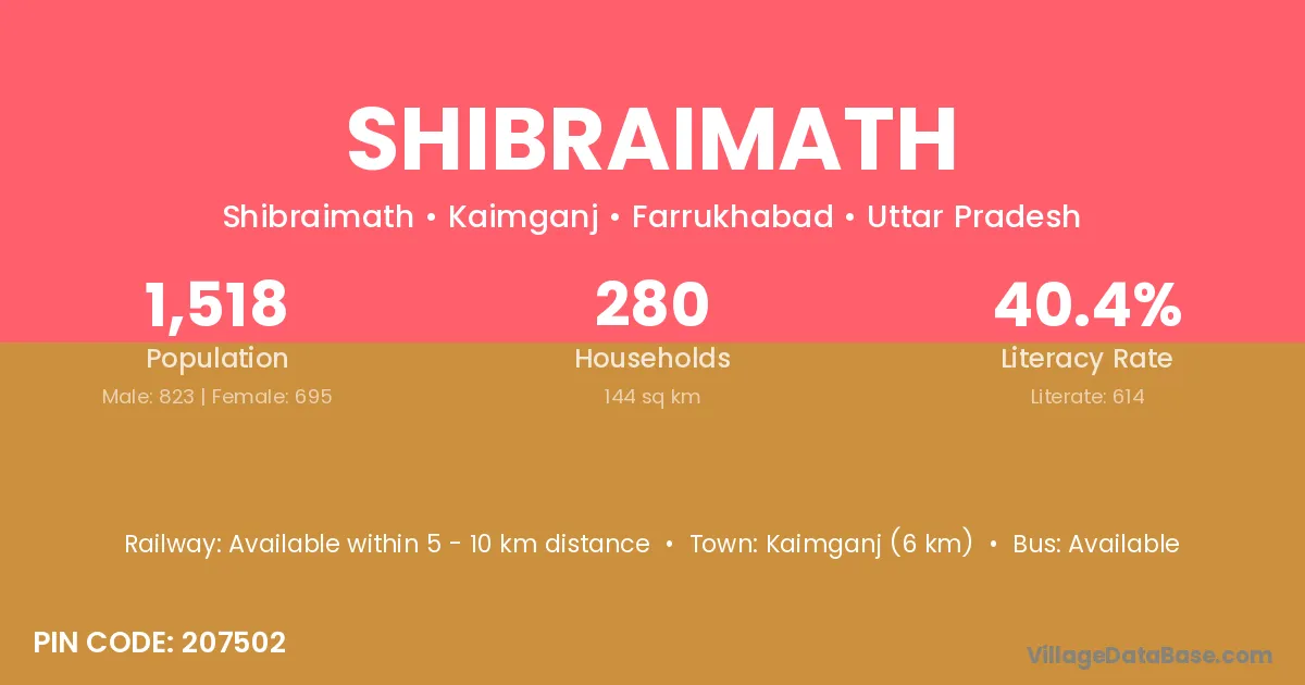 Kaimganj (6 km) is the nearest town to Shibraimath village for major economic activities and is located approximately 6 km away.