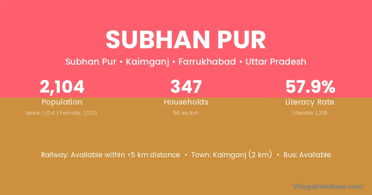 Kaimganj (2 km) is the nearest town to Subhan Pur village for major economic activities and is located approximately 2 km away.