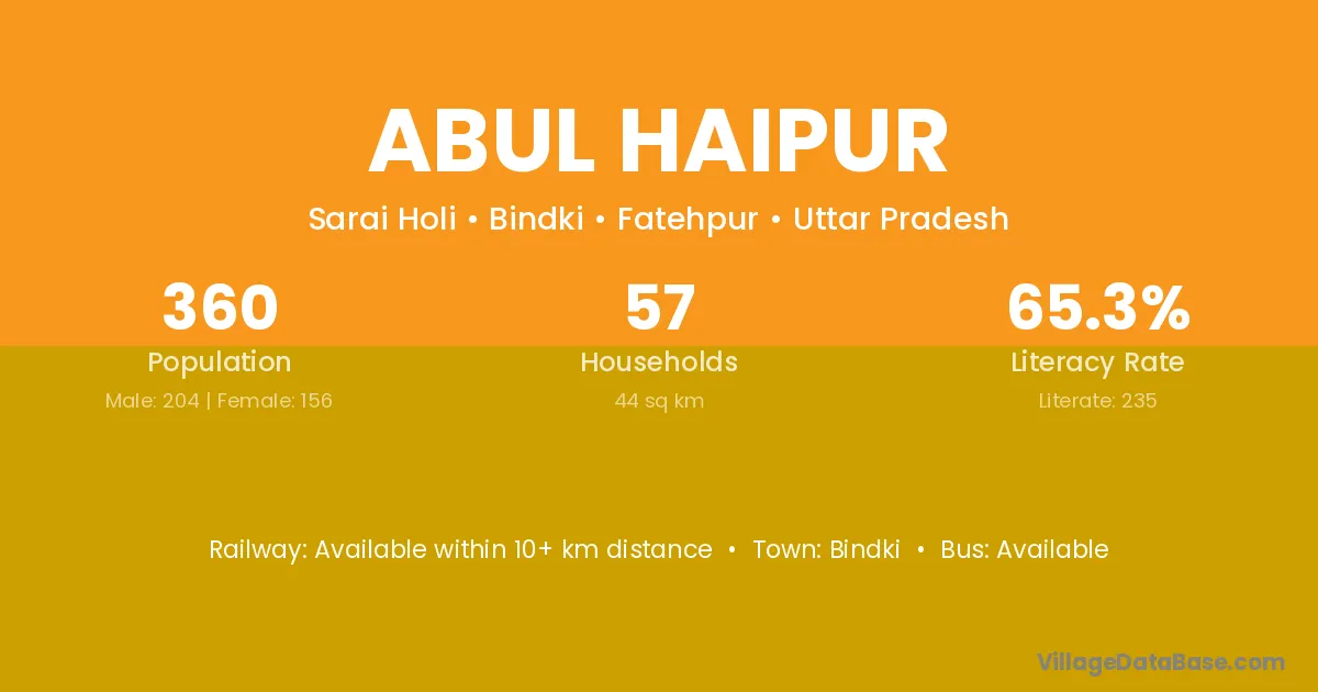 Abul Haipur village has a total population of 360 people, of which 204 are males and 156 are females.