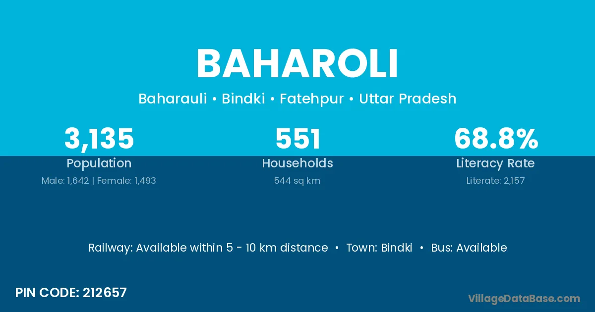Baharoli village has a total population of 3,135 people, of which 1,642 are males and 1,493 are females.
