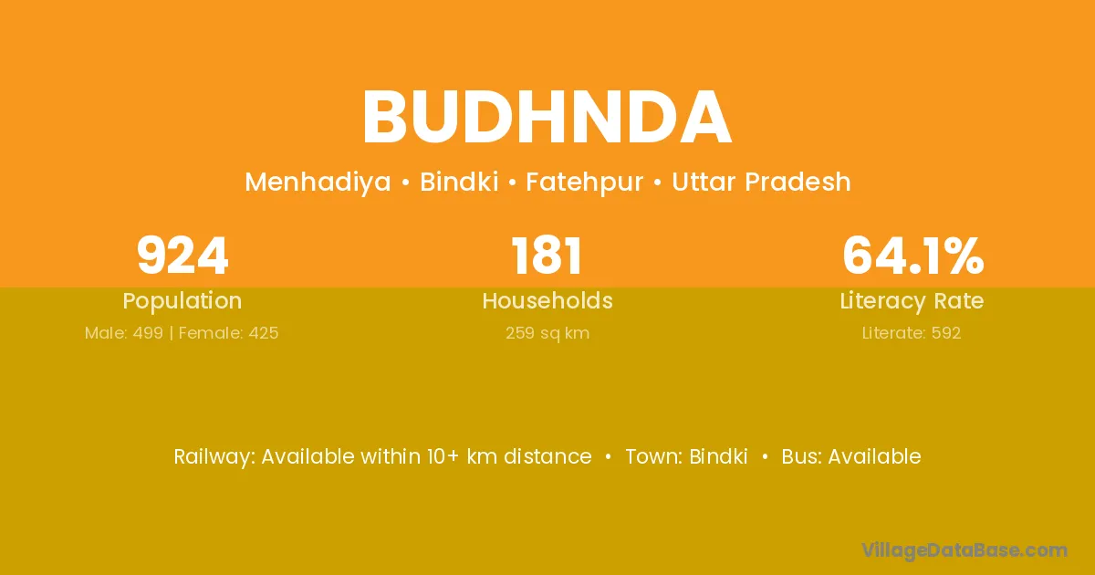 Bindki is the nearest town to Budhnda village for major economic activities