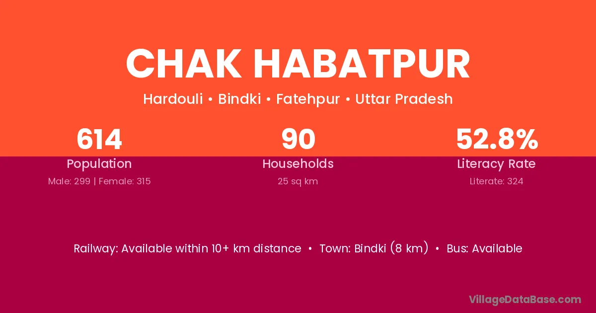 Bindki (8 km) is the nearest town to Chak Habatpur village for major economic activities and is located approximately 8 km away.