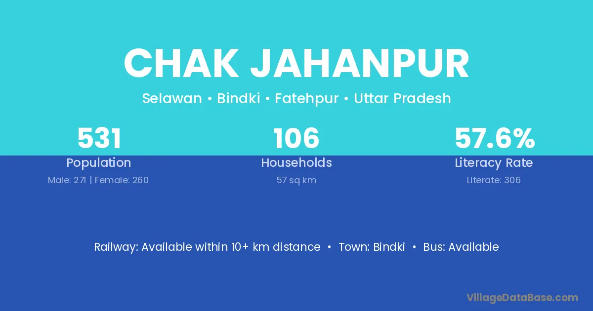 Chak Jahanpur village has a total population of 531 people, of which 271 are males and 260 are females.