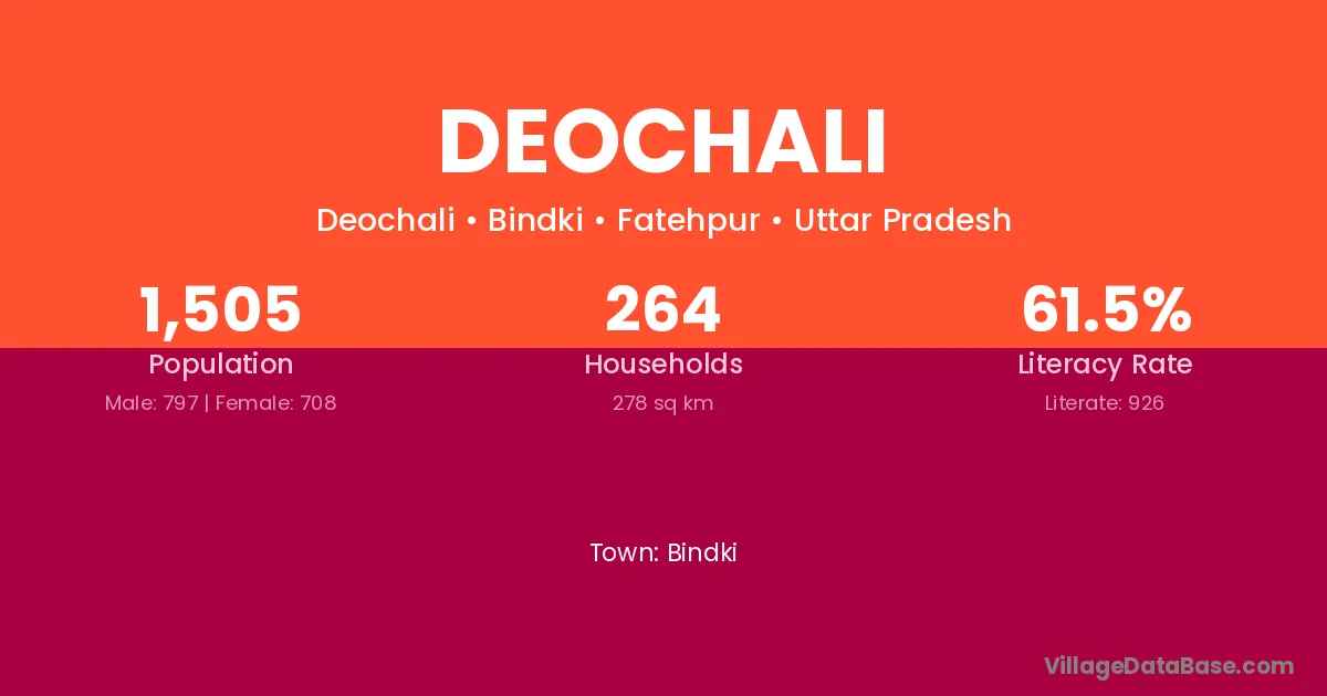 Deochali village has a total population of 1,505 people, of which 797 are males and 708 are females.
