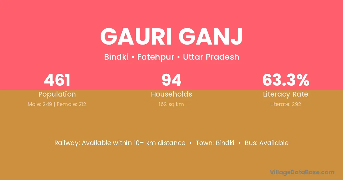Gauri Ganj village has a total population of 461 people, of which 249 are males and 212 are females.