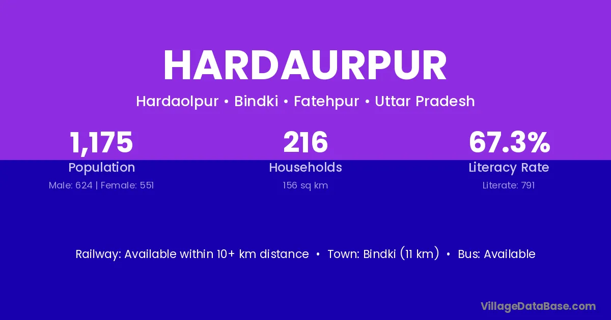 Bindki (11 km) is the nearest town to Hardaurpur village for major economic activities and is located approximately 11 km away.