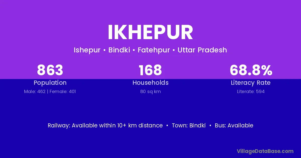 Ikhepur village has a total population of 863 people, of which 462 are males and 401 are females.