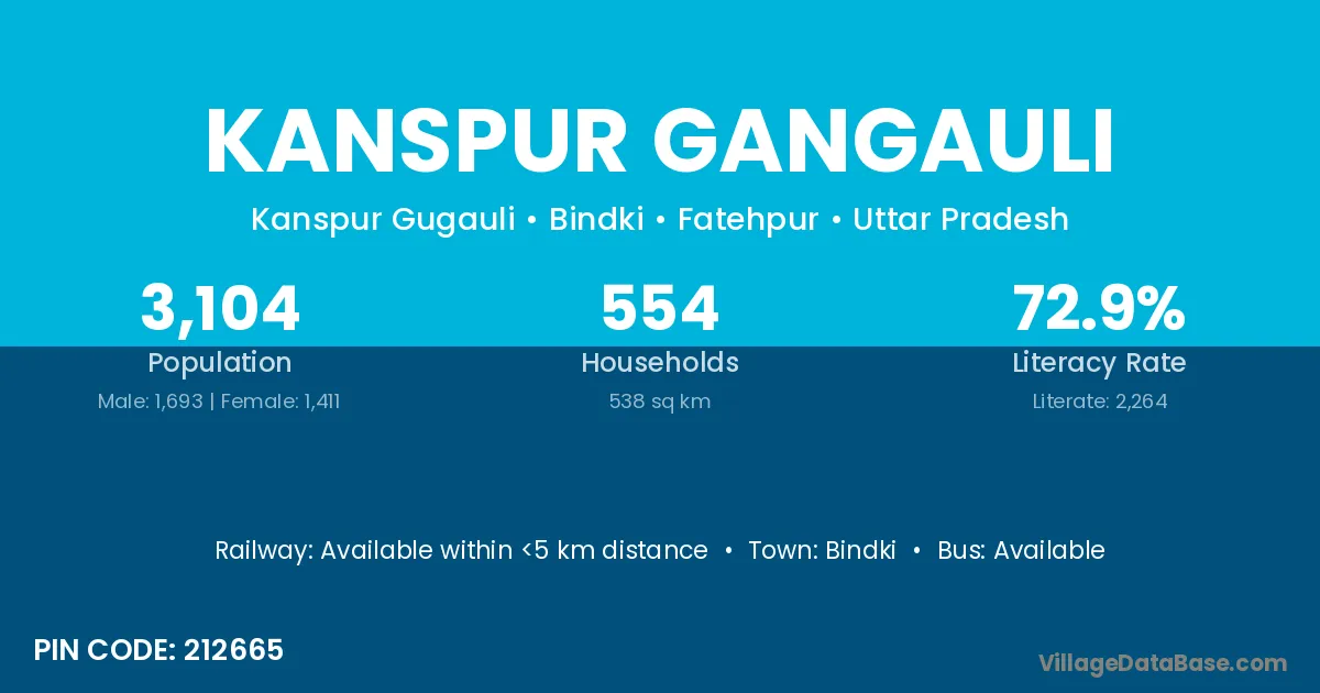 Kanspur Gangauli village has a total population of 3,104 people, of which 1,693 are males and 1,411 are females.
