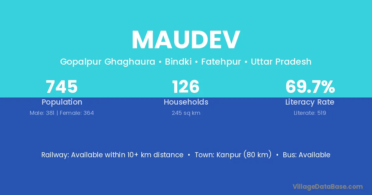 Maudev village has a total population of 745 people, of which 381 are males and 364 are females.