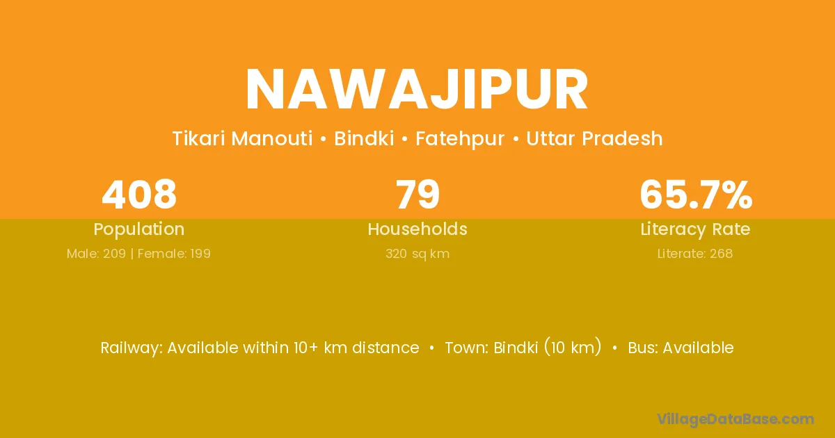 Nawajipur village has a total population of 408 people, of which 209 are males and 199 are females.