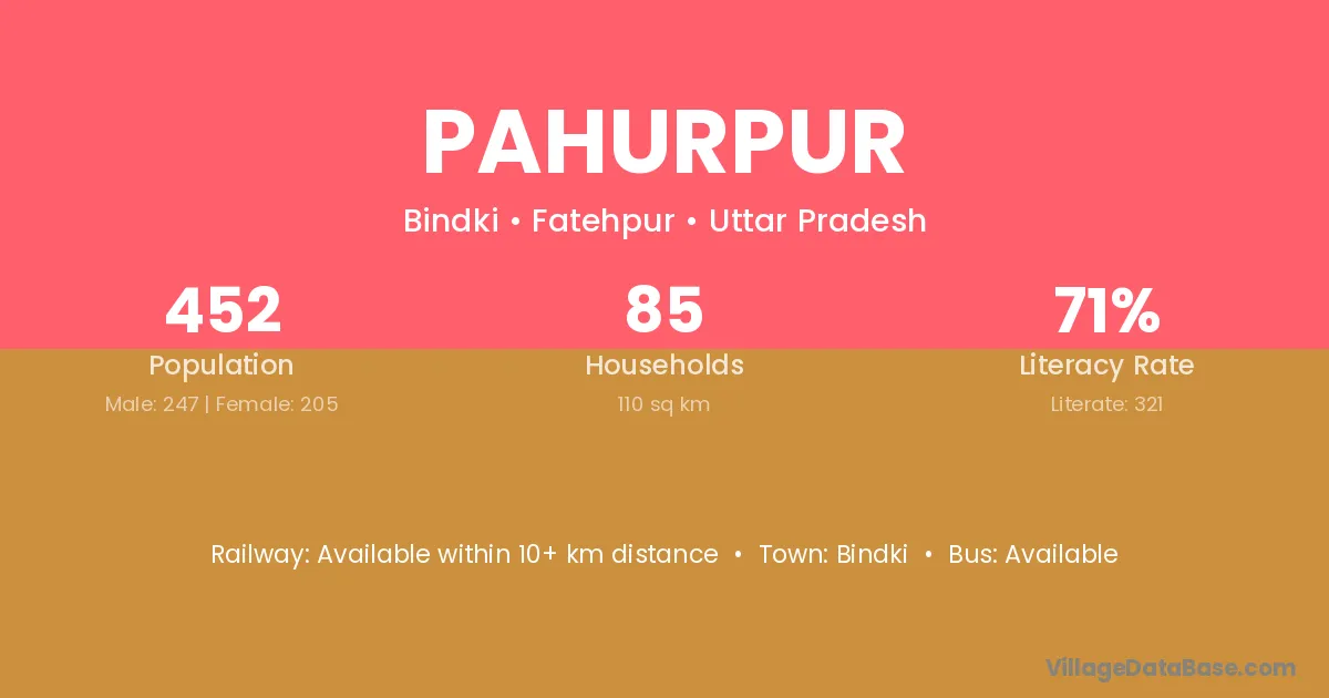 Pahurpur village has a total population of 452 people, of which 247 are males and 205 are females.