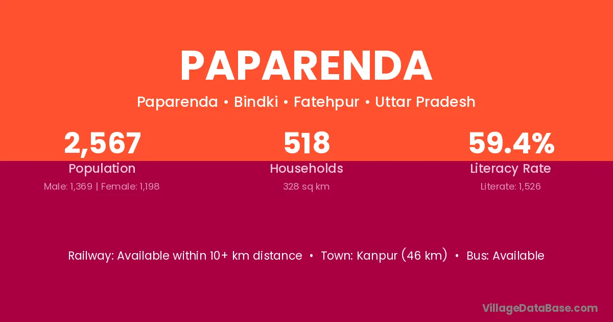 Kanpur (46 km) is the nearest town to Paparenda village for major economic activities and is located approximately 46 km away.