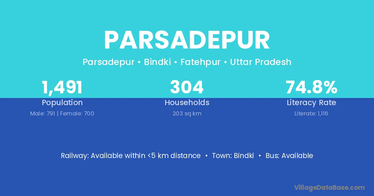 Bindki is the nearest town to Parsadepur village for major economic activities
