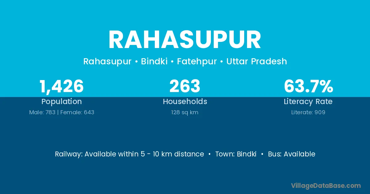 Rahasupur village has a total population of 1,426 people, of which 783 are males and 643 are females.