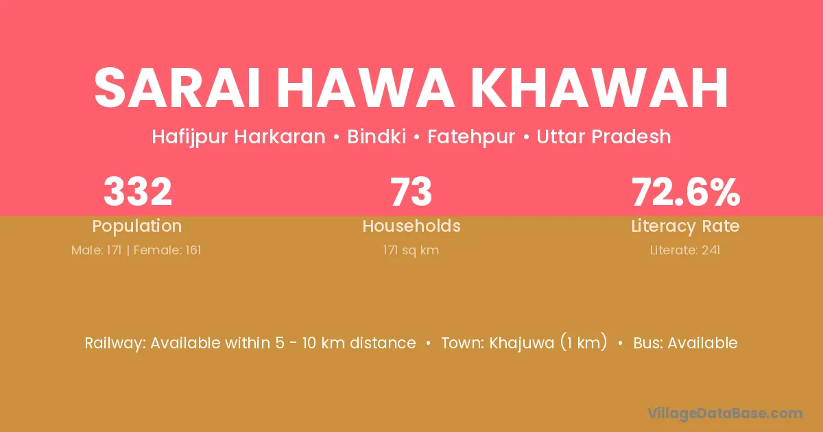 Khajuwa (1 km) is the nearest town to Sarai Hawa Khawah village for major economic activities and is located approximately 1 km away.