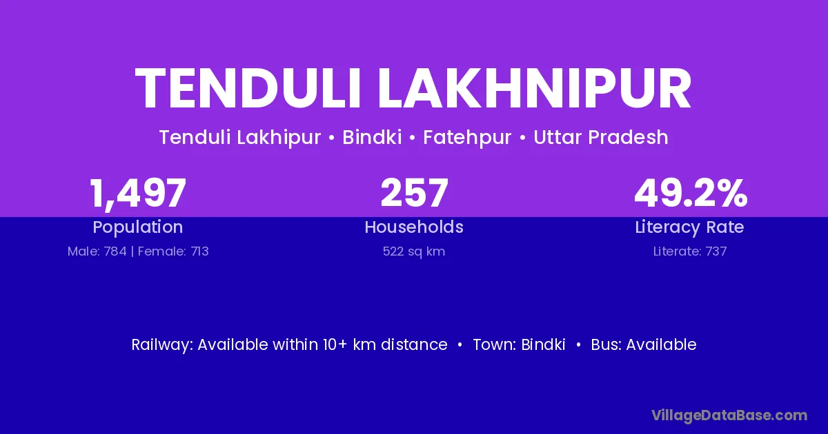 Bindki is the nearest town to Tenduli Lakhnipur village for major economic activities