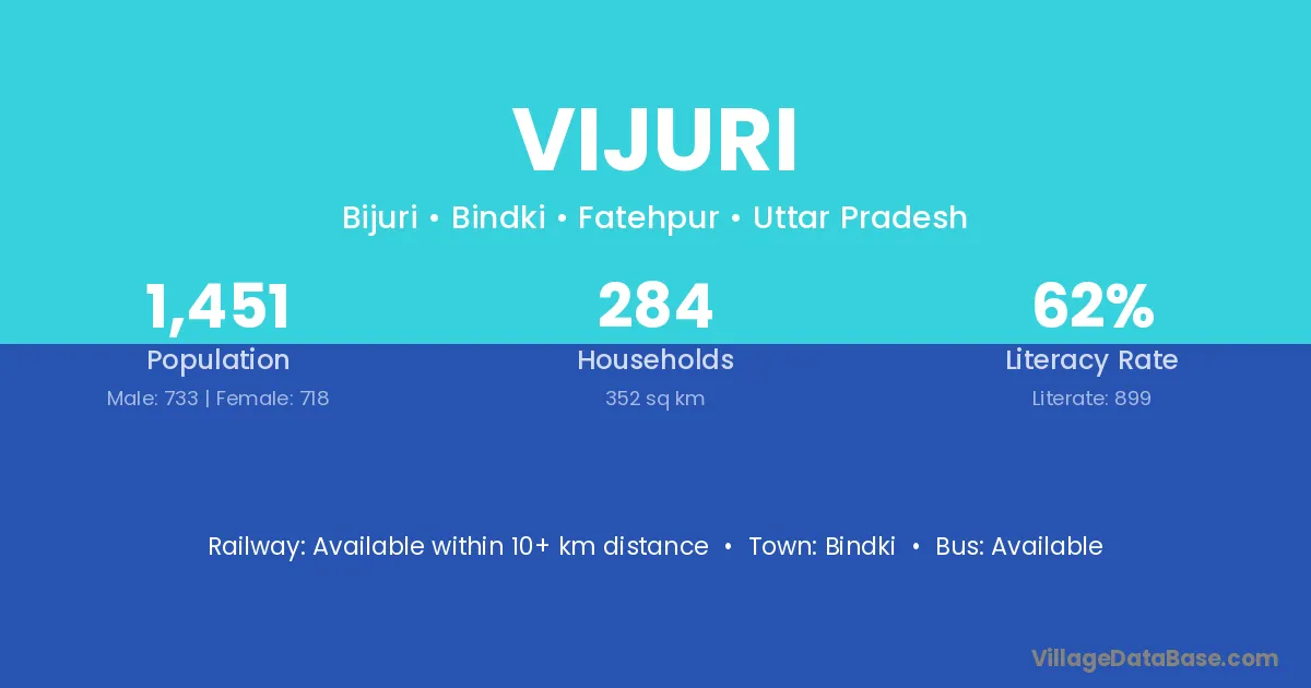 Bindki is the nearest town to Vijuri village for major economic activities