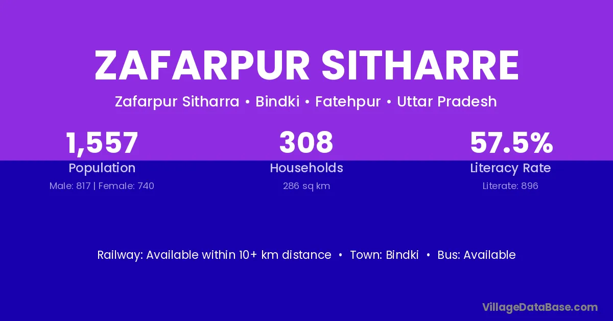Bindki is the nearest town to Zafarpur Sitharre village for major economic activities