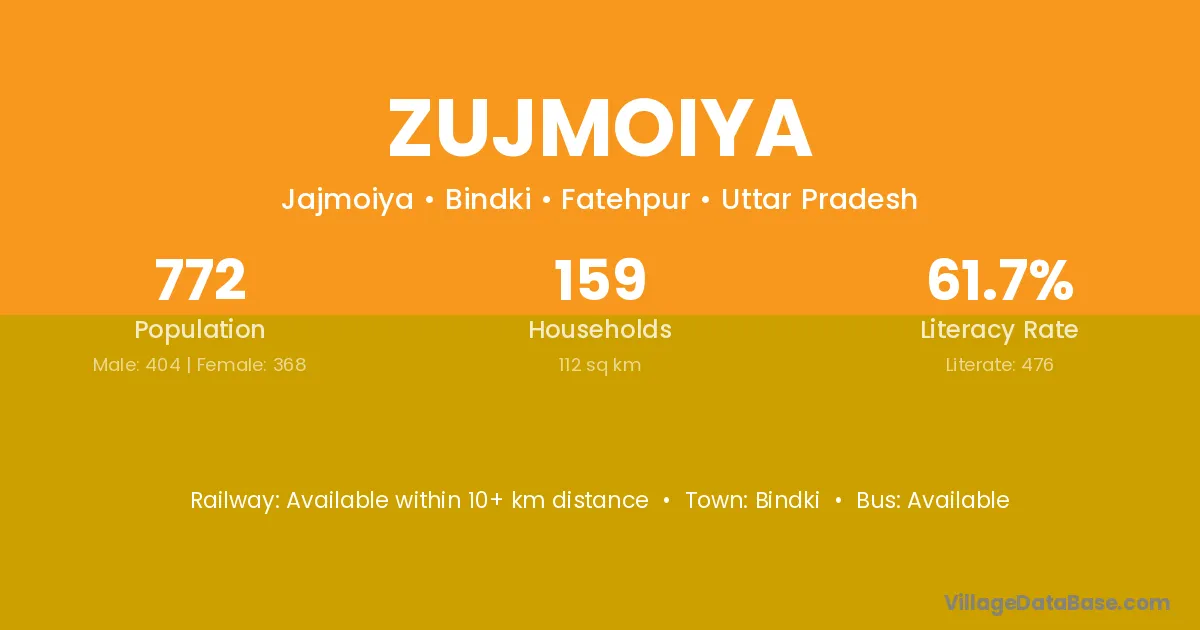 Bindki is the nearest town to Zujmoiya village for major economic activities