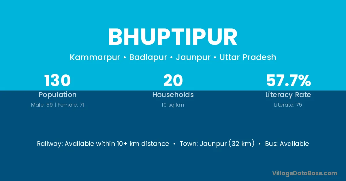Fatehpur (10 km) is the nearest town to Bhuptipur village for major economic activities and is located approximately 10 km away.