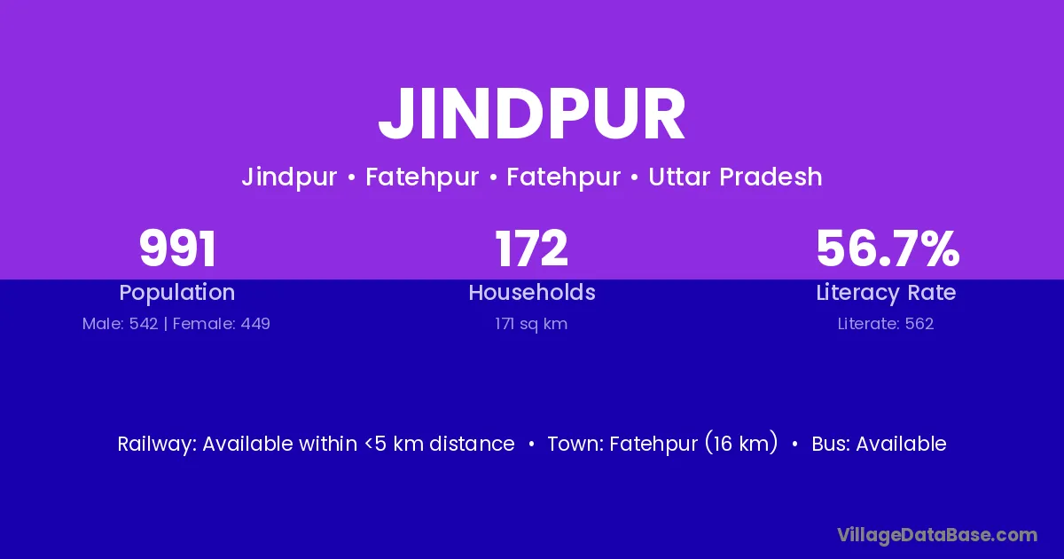 Fatehpur (16 km) is the nearest town to Jindpur village for major economic activities and is located approximately 16 km away.