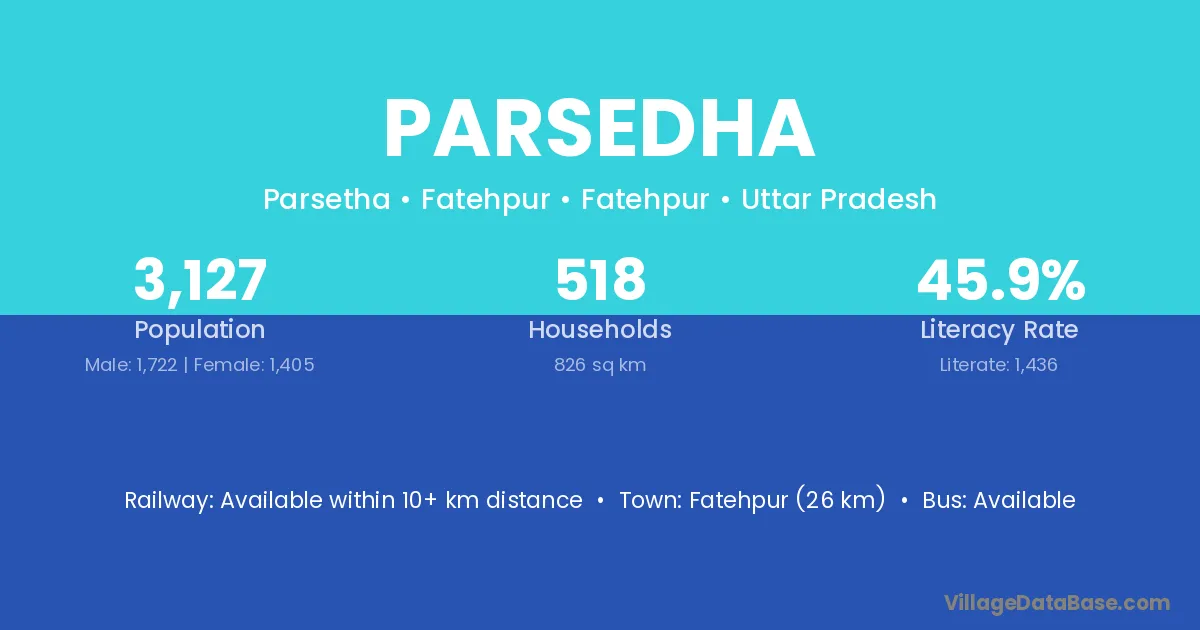 Fatehpur (26 km) is the nearest town to Parsedha village for major economic activities and is located approximately 26 km away.