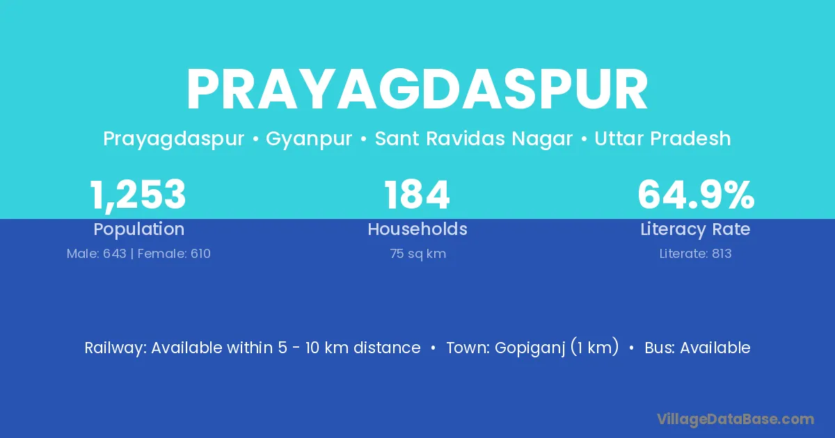 The literacy rate of Prayagdaspur village is 61.63%. Male literacy stands at 73.80% and female literacy at 47.13%.
