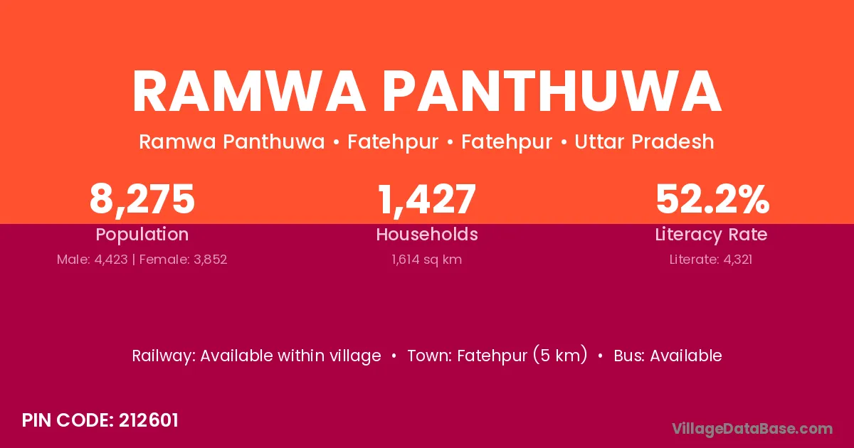 Ramwa Panthuwa village has a total population of 8,275 people, of which 4,423 are males and 3,852 are females.