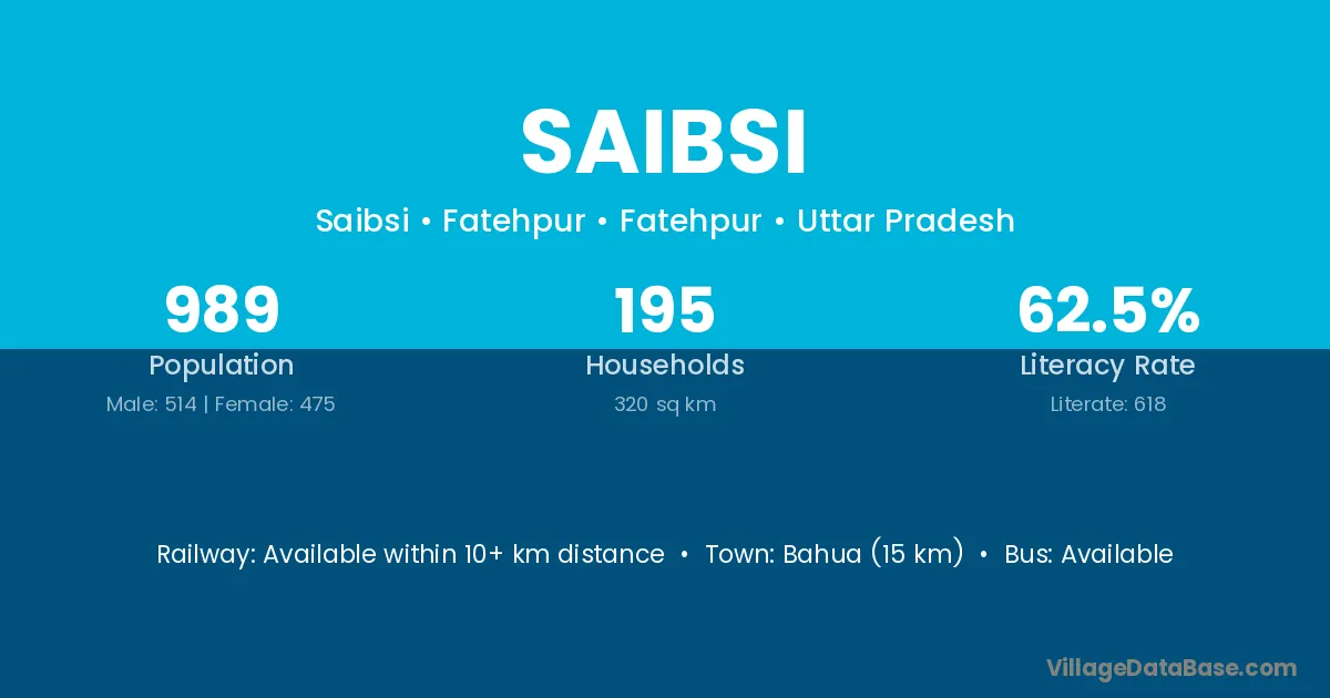 Bahua (15 km) is the nearest town to Saibsi village for major economic activities and is located approximately 15 km away.