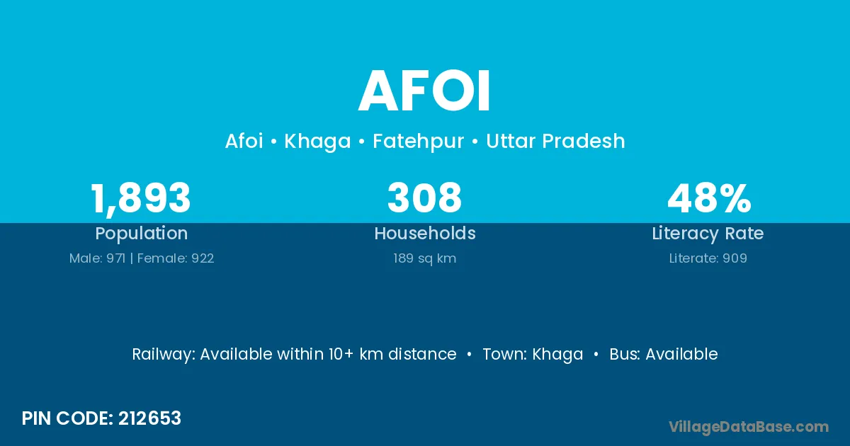 Afoi village has a total population of 1,893 people, of which 971 are males and 922 are females.