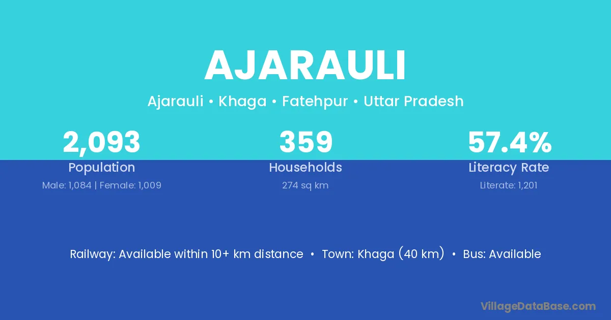 Khaga (40 km) is the nearest town to Ajarauli village for major economic activities and is located approximately 40 km away.