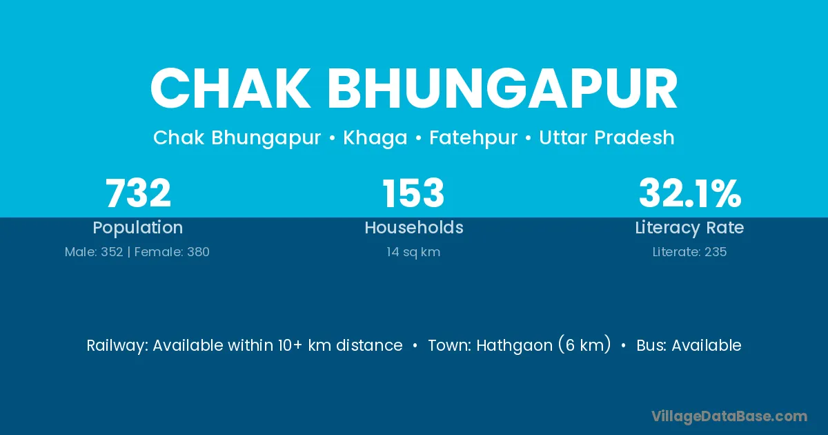 Chak Bhungapur village has a total population of 732 people, of which 352 are males and 380 are females.