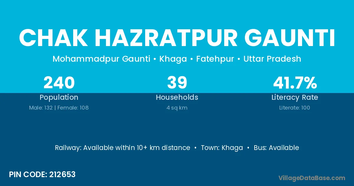 Khaga is the nearest town to Chak Hazratpur Gaunti village for major economic activities