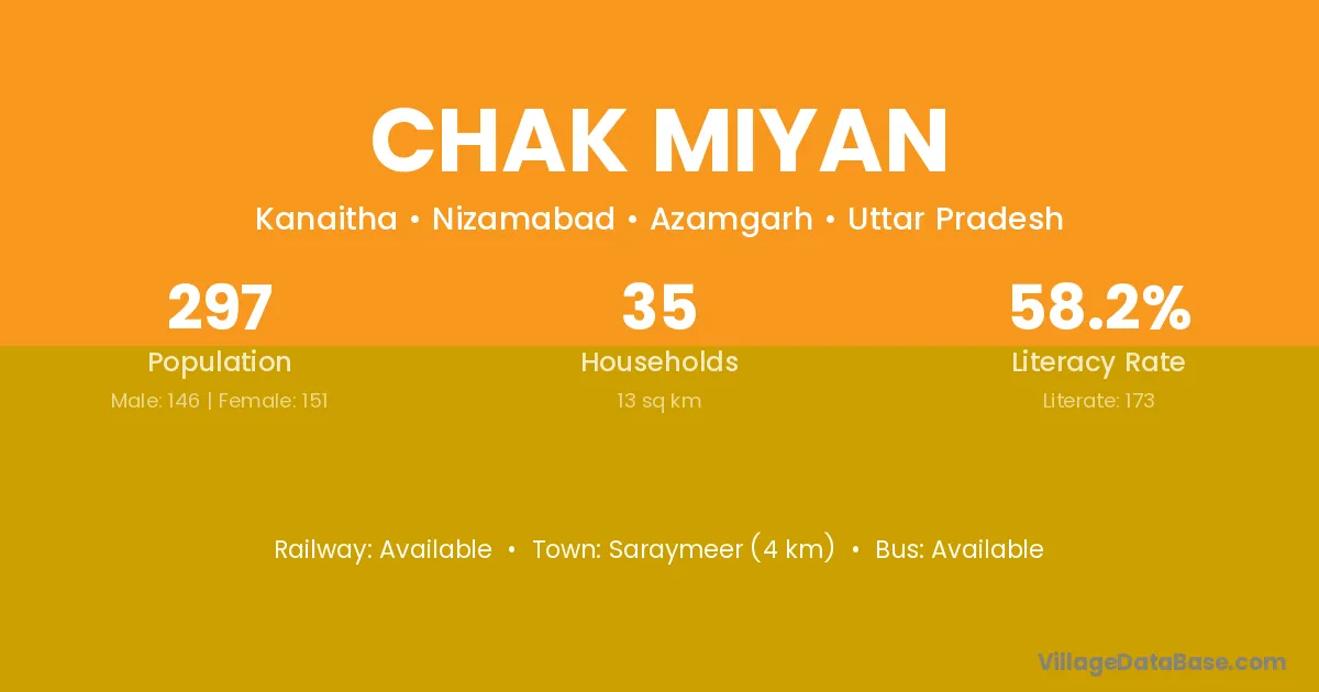 Fatehpur (38 km) is the nearest town to Chak Miyan village for major economic activities and is located approximately 38 km away.
