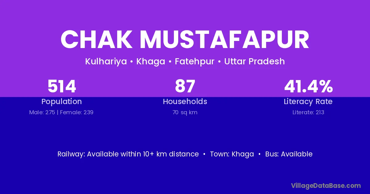 Chak Mustafapur village has a total population of 514 people, of which 275 are males and 239 are females.