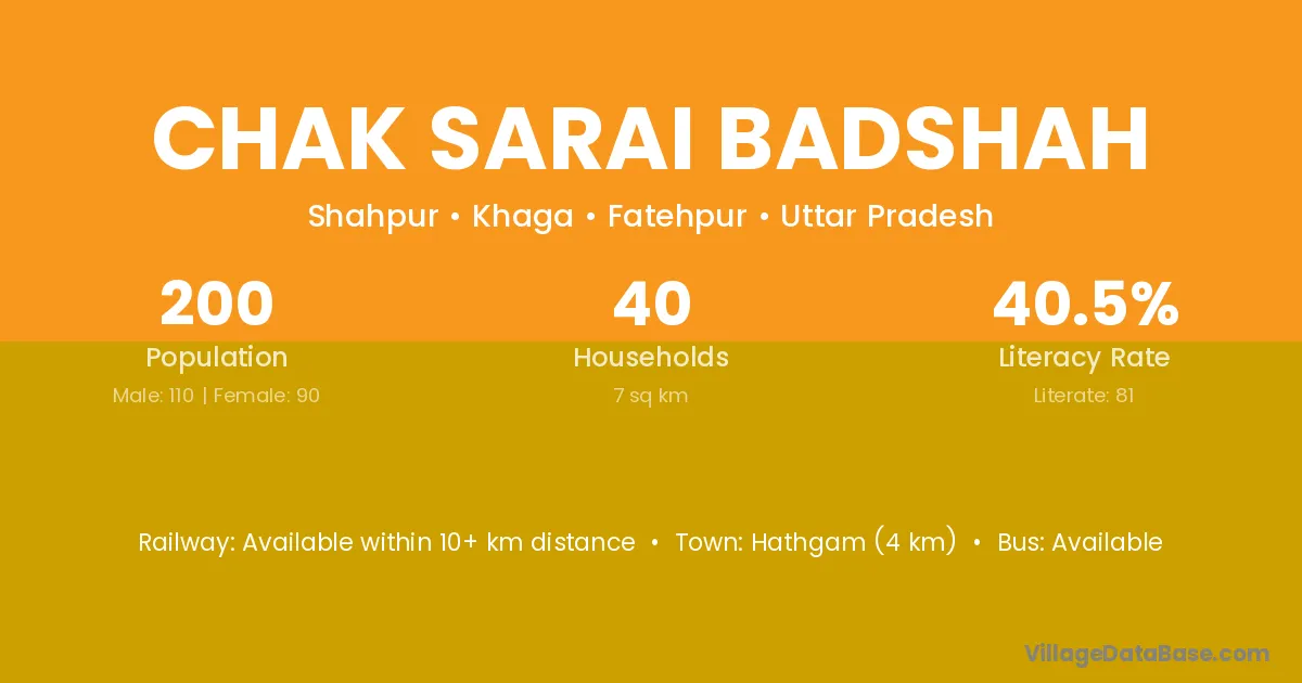 Hathgam (4 km) is the nearest town to Chak Sarai Badshah village for major economic activities and is located approximately 4 km away.