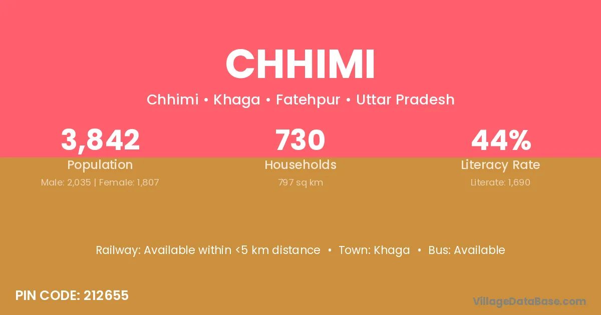 Chhimi village is located in the Khaga Tehsil of the Fatehpur district in Uttar Pradesh .