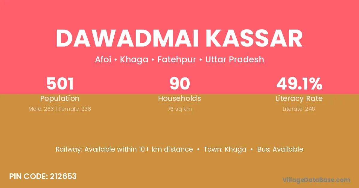 Dawadmai Kassar village has a total population of 501 people, of which 263 are males and 238 are females.