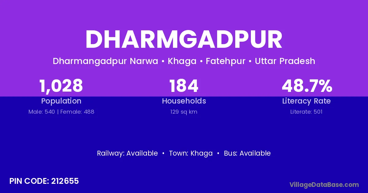 According to Census 2011 information, the village code of Dharmgadpur village is 212655.
