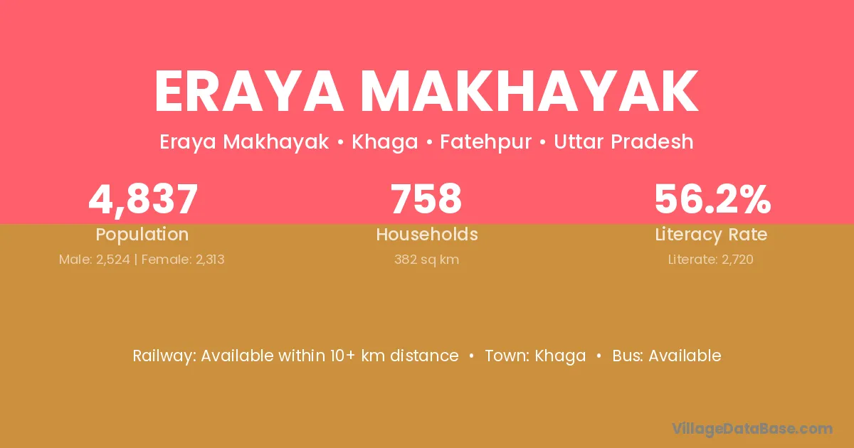 Eraya Makhayak village has a total population of 4,837 people, of which 2,524 are males and 2,313 are females.