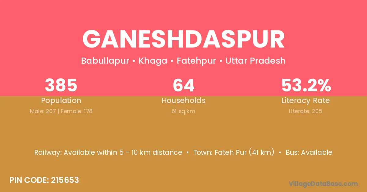 Fateh Pur (41 km) is the nearest town to Ganeshdaspur village for major economic activities and is located approximately 41 km away.