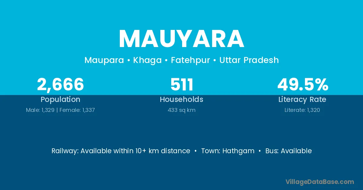 Mauyara village has a total population of 2,666 people, of which 1,329 are males and 1,337 are females.